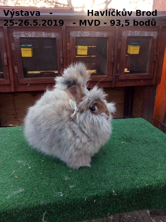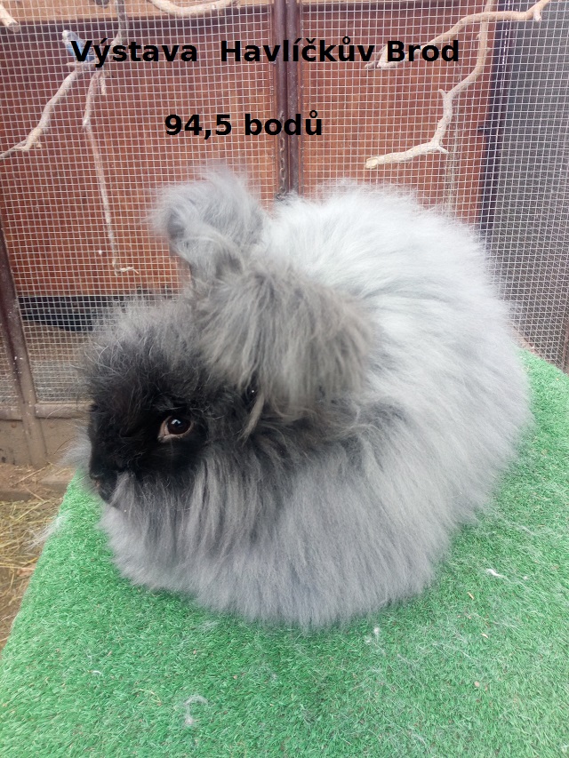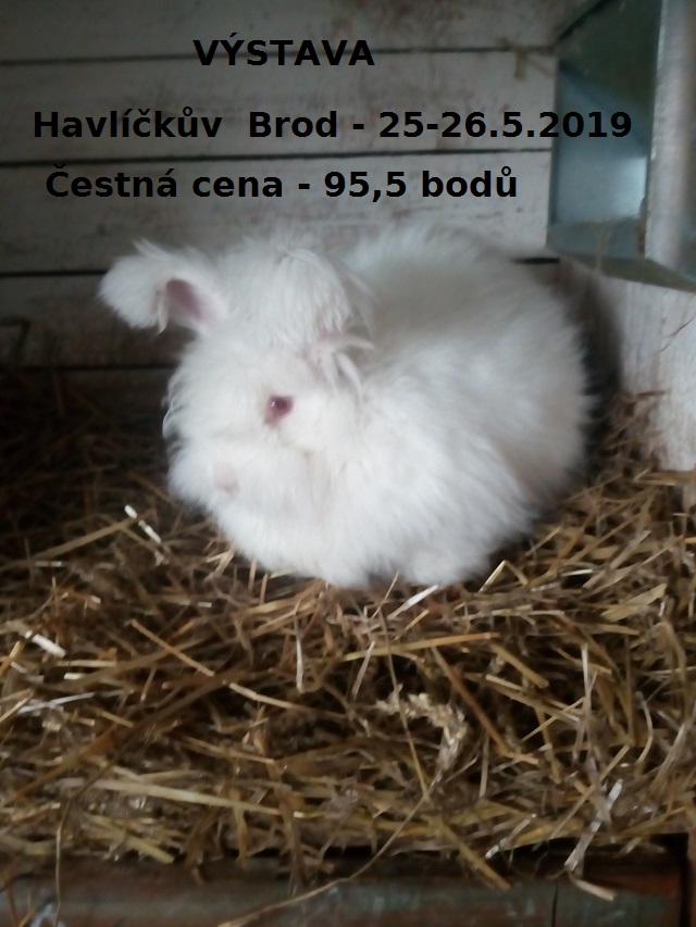 Zůčastnili se Angory v barvě bílé , černé a divoké . Přivezli jme krásné hodnocení a ČESTNOU CENU za 95,5 bodů u bílého samečka.